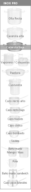 Serie diseñada para ofrecer el mayor rendimiento en la cocina profesional. Segura, sólida y robusta. Asas de varillas inox ultrarresistente y resistentes al calor. Tapas eficientes diseñadas para el ahorro de energía. Soldadura artesanal e inspección en cada unidad. Limpieza fácil y rápida.