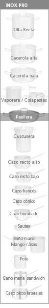 Paellera sin tapa. Cuerpo en acero inoxidable 18/10 con triple fondo difusor (inox-alu-inox). Pulido satinado interior y exterior uniforme. La tapa se puede comprar a parte.
