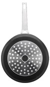 Ideal para cocción sin grasas por su antiadherente reforzado. Aluminio fundido indeformable muy conductor de calor. Limpieza fácil.