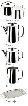 Serie de cafetería en acero inox 18/10 pulido brillante.