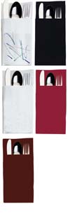 Plegadas para introducir los cubiertos. Tisú 2 capas de 2 x 18 g/m2 (Pack 50 un.) o Airlaid 55 g/m2 (Pack 30 un.)