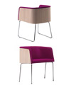 Butacas cuatro patas (Allure 737) y trineo (Allure 738). En roble blanqueado o teñido wengué, con ángulos redondeados y formas que te envuelven.
