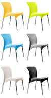 Uso interior y exterior. Asiento PP. Patas aluminio anodizado. Apilable. Sistema evacuación de agua. Protección rayos UV. Altura: 81 cm. Anchura: 50 cm. Fondo: 59 cm. Altura asiento: 44 cm.