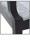 Sillón de madera maciza con asiento y respaldo tapizados. Respaldo con diseño ergonómico de forma elíptica. Bordes y cantos redondeados. Asiento y respaldo tapizados.
