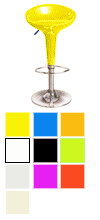 Taburete giratorio y regulable disponible en polipropileno (en varios colores) y rattán.