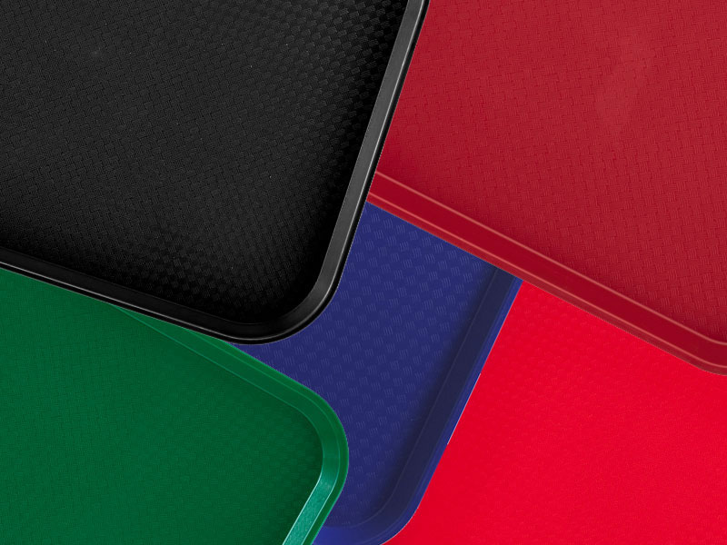 Bandeja Fast Food. Fabricada en polipropileno. Superficie texturizada. Ligera y ergonómica. Ideal para servicios de comida rápida. Disponble en varios colores (rojo, azul, verde, marrón y negro). Borde alto.