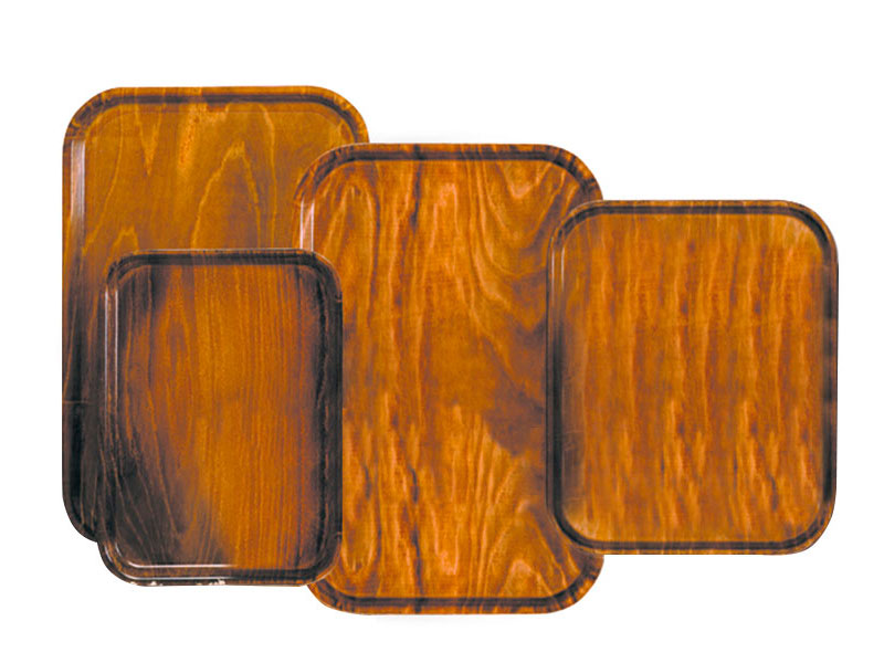 Bandejas DECOR Wood con tamaño gastronorm GN 1/1. Amplia variedad de acabados melmínicos imitación de tonos naturales de madera. Acabado brillo.