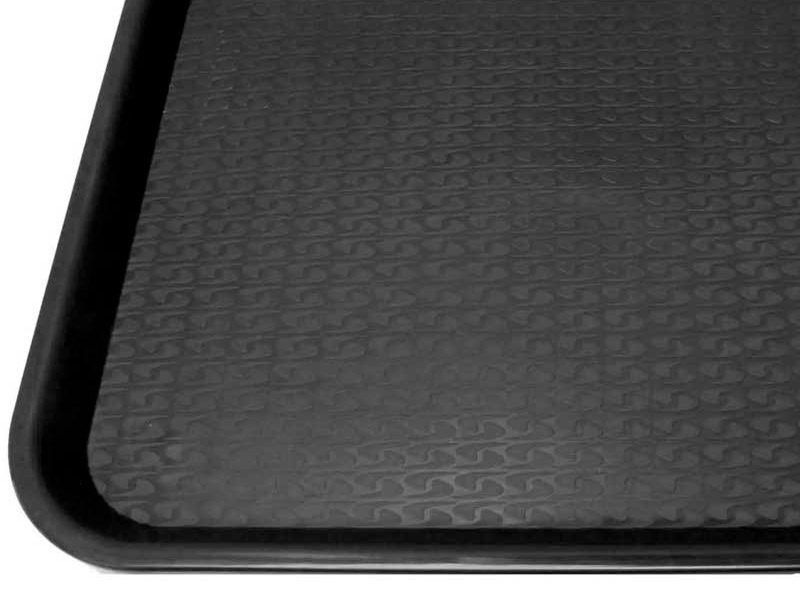 Bandejas fast food. Fabricadas en polipropileno. El borde grueso reforzado con acanalados en las esquinas añade resistencia a los impactos. Cuatro cuñas de apilado para secar rápidamente y evitar que se peguen entre sí. Acabado texturizado entretejido semibrillante que aporta una superficie menos resbaladiza. Apilable y resistente a temperaturas de 86ºC. Reciclable.