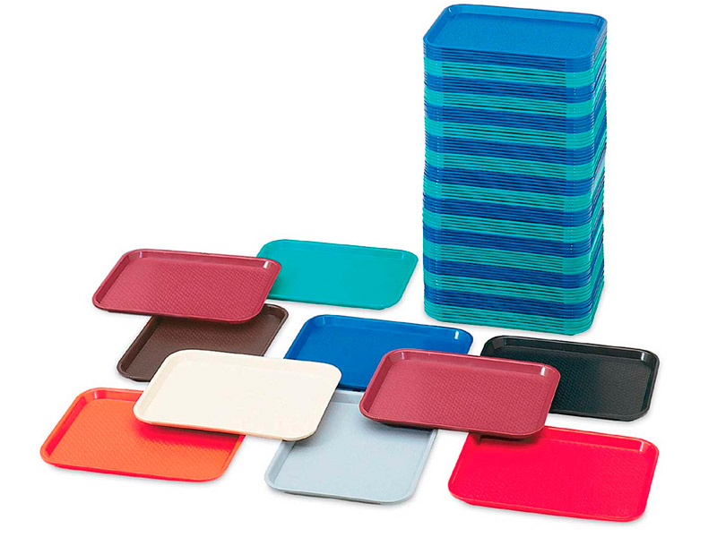 Bandejas fast food. Fabricadas en polipropileno. Borde grueso reforzado con acanalados en las esquinas.