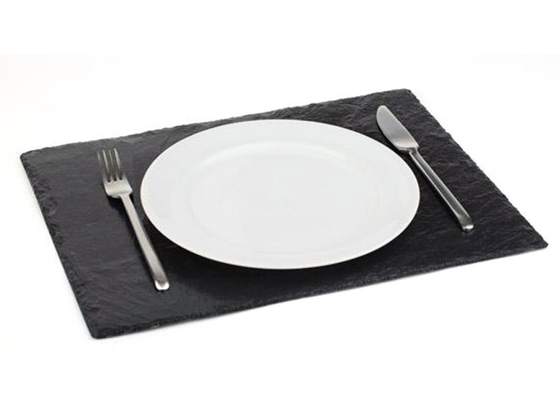 Bandejas rectangulares de pizarra natural con pies antideslizantes. Grosor de 6 a 9 mm.