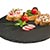 Bandejas de pizarra natural selladas con barniz transparente apto para uso alimenticio.