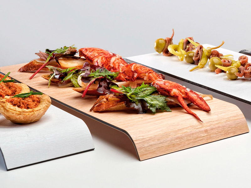 La serie Sacha, de madera natural, ofrece una solución innovadora y versátil para la presentación de servicios de mesa.