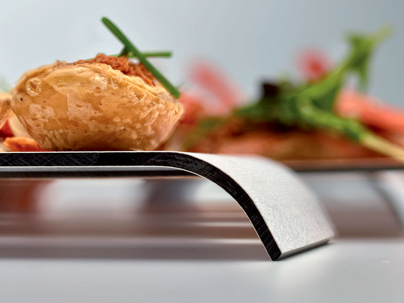 Bandejas Sacha Satin con acabados en color liso. La serie Sacha ofrece una revolucionaria solución para la presentación de servicios de mesa.