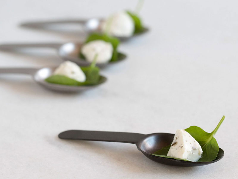 Inox 18/10 con 4 acabados distintos. 12 cm. Las cucharas degustación completan todo el conjunto de LES ESSENCES, configurándose como una propuesta moderna y sofisticada a la altura de las presentaciones más exigentes.