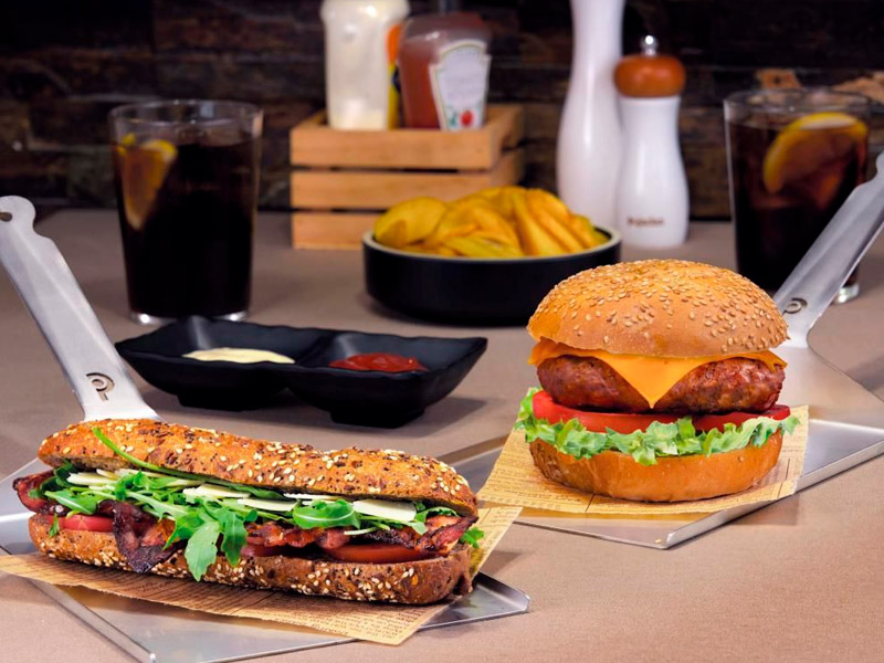 Bandejas de pizarra natural selladas con barniz transparente apto para uso alimenticio.