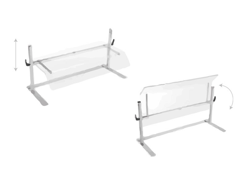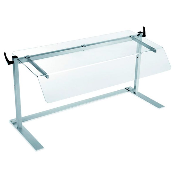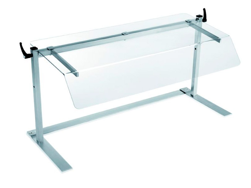 Protección antialiento regulable. Dispositivo diseñado para proteger los alimentos expuestos sin comprometer su visibilidad. Este sistema ajustable permite cambiar tanto la inclinación como la altura, adaptándose a diferentes espacios y necesidades. Disponible en tres tamaños, ofrece una solución versátil y eficaz para garantizar la higiene en la presentación de alimentos, ideal para buffets, mostradores y cualquier espacio donde se expongan alimentos al aire.