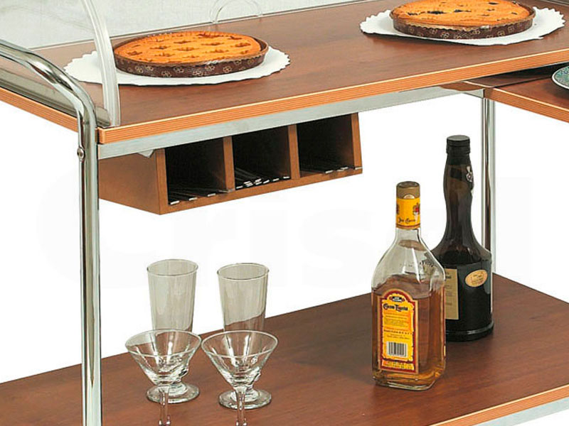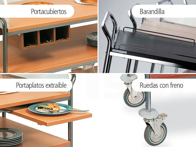 Carro 2 estantes. Tubo redondo cromado. Estantes laminados. 4 paragolpes y 4 ruedas giratorias Ø125mm