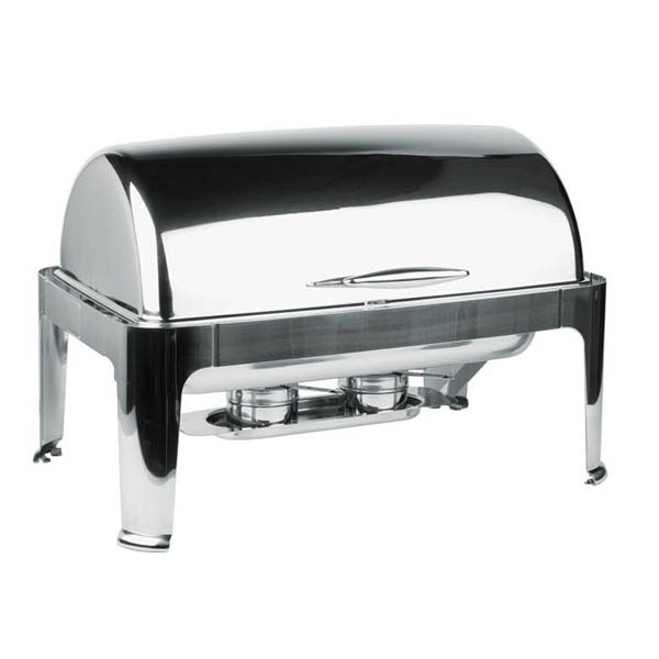 Chafing Dish ELITE rectangular: Tapa roll-top, cubeta GN 1/1 h65 mm, 2 quemadores, cuba baño maría.