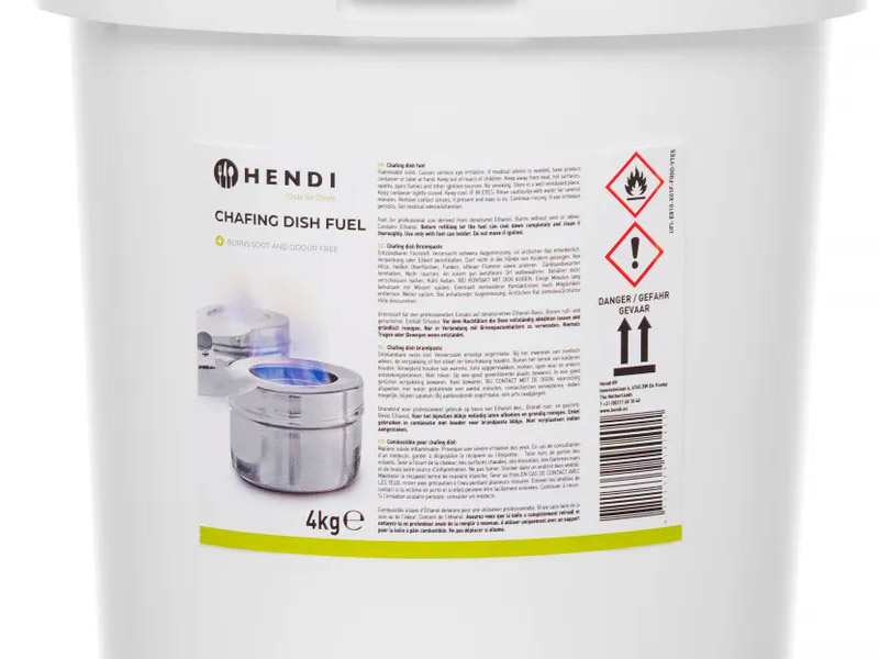 Bidón de combustible a base de etanol. Combustión segura sin olores ni hollín. Usar con soporte adecuado.