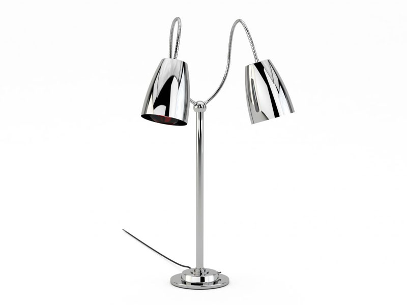 Con 2 lámparas de brazo fijo: 1.250 W. Medidas 66 x 63 x h82 cm. GN 2/1. Placas calientes con lámpara infrarrojos. Placa con termostato (30/90ºC) y luz indicadora. Estructura acero inoxidable.