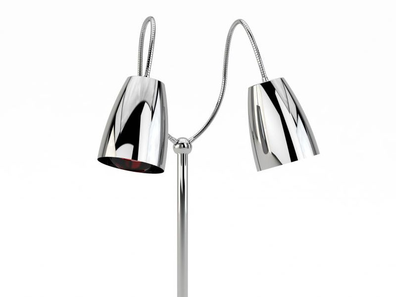 Lámparas infrarrojas de brazo fijo con pie. Estructura acero cromado. 250 W. Medidas Ø22 x h75 cm.