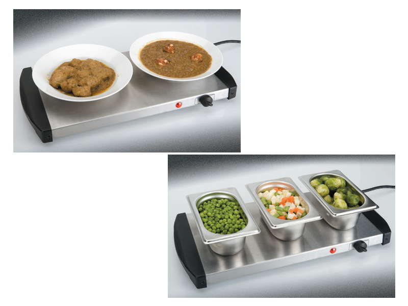 Estructura de apoyo tubular en acero Inox. Para mantener los alimentos calientes gracias a las lámparas infrarrojos.