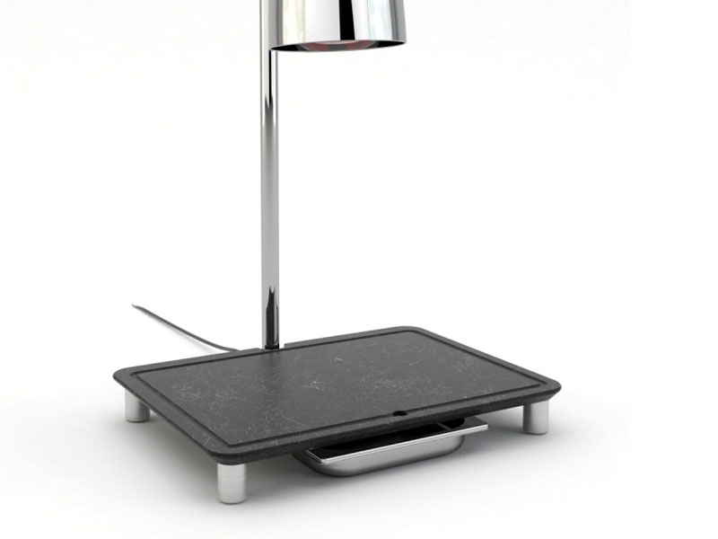 Lámparas infrarrojos de pie. Acero inoxidable. Luz roja o blanca (opcional). Brazo fijo. Base de Ø22,4 cm. Altura 62(desde la base de la lámpara)/98cm. Casquillo modelo P1.