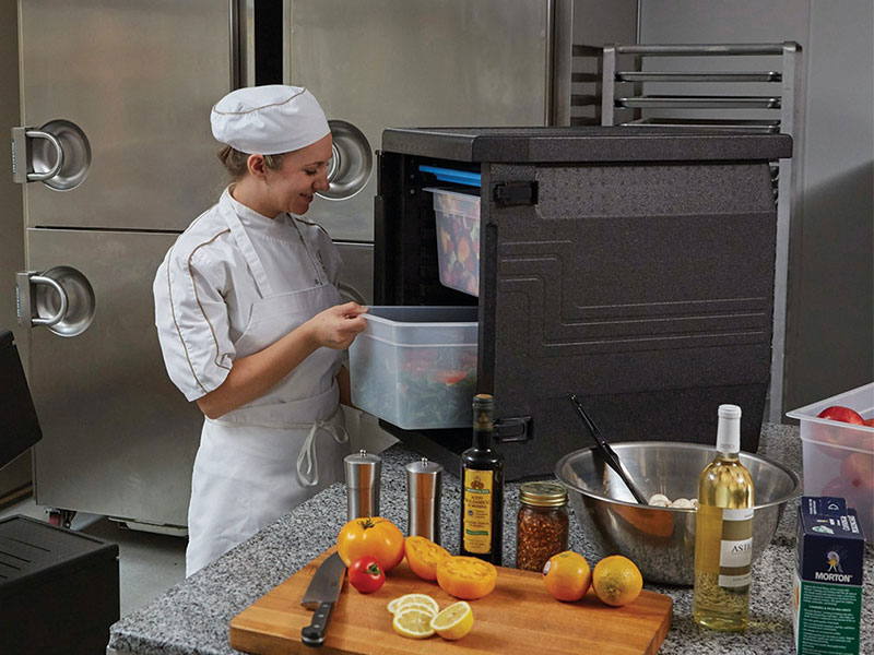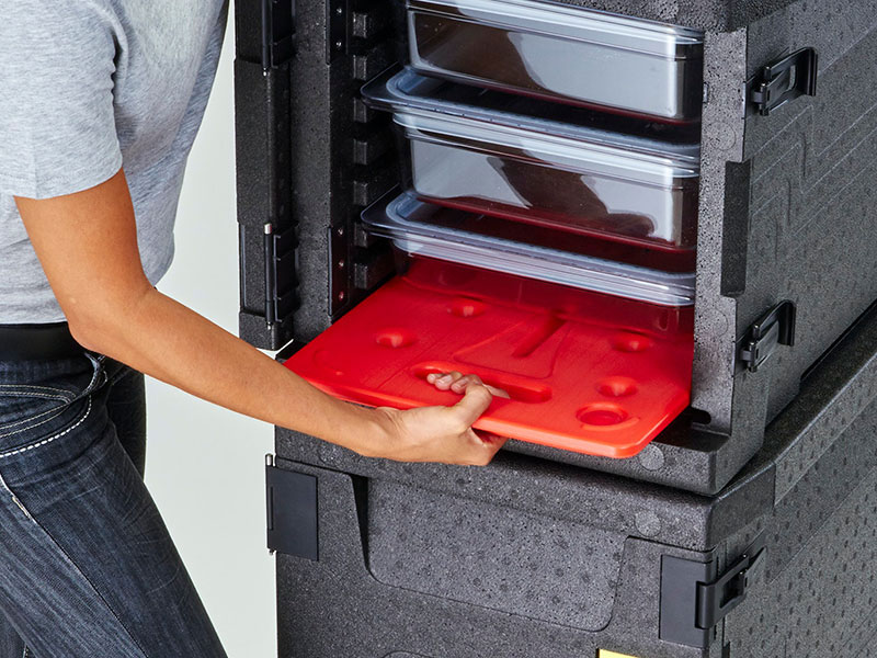 La última línea de contenedores isotérmicos de Cambro con una retención superior de la temperatura para mantener los alimentos calientes o fríos durante 4 horas o más. Excelente durabilidad y precio asequible. Fabricado en polipropileno expandido (EPP), ultraligero y ecológico. Área de etiquetas integrada. Químicamente inertes.