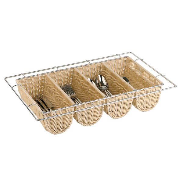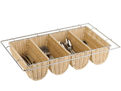 Cubertero de polipropileno trenzado y metal. Medidas GN 1/1. Apto para situar en Buffets.