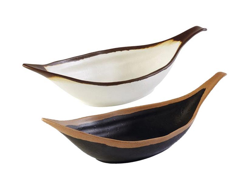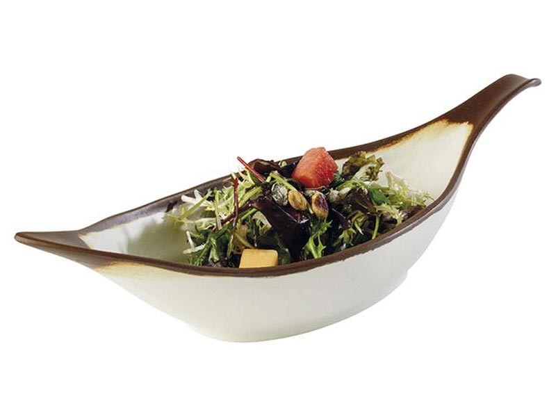Bandejas de melamina imitación barro con borde marrón. Apto para lavavajillas.