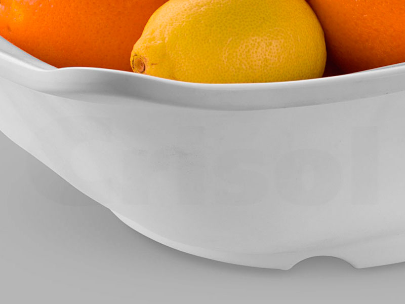Rabanera oval de melamina. Líneas suaves y contorno discreto.