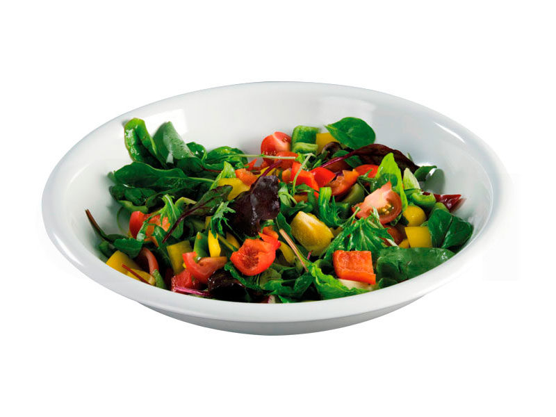 Plato Ø30 cm. Cucharillas 12x5,2 cm. La más alta prestación, con sus minicucharillas de porcelana ovaladas incrustadas en el hueco de la fuente