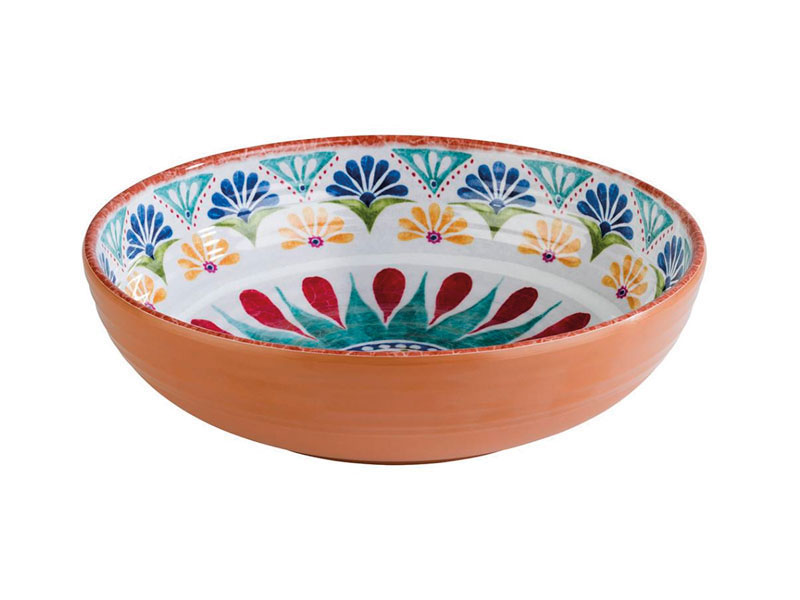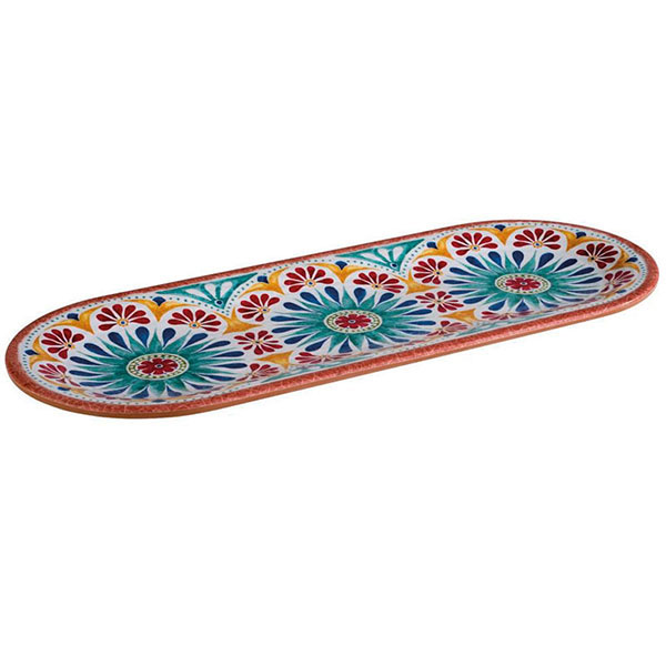 Serie mediterránea de melamina. Encanto español y detalles bellamente elaborados. Bandejas con pies antideslizantes. MÁXIMO 70ºC.
