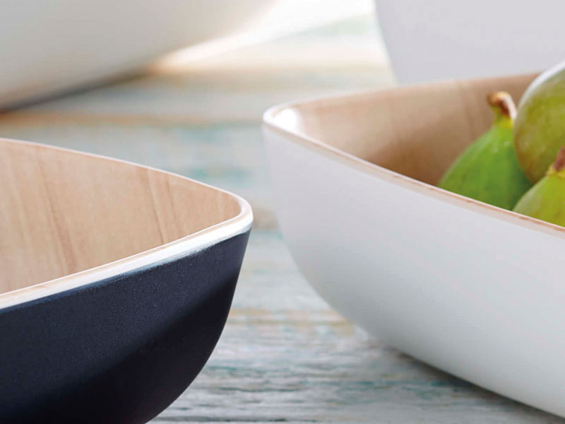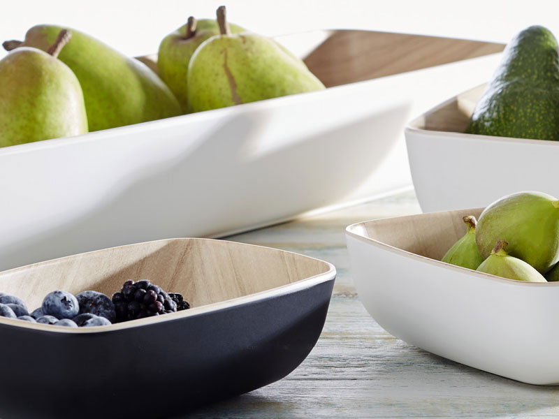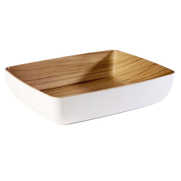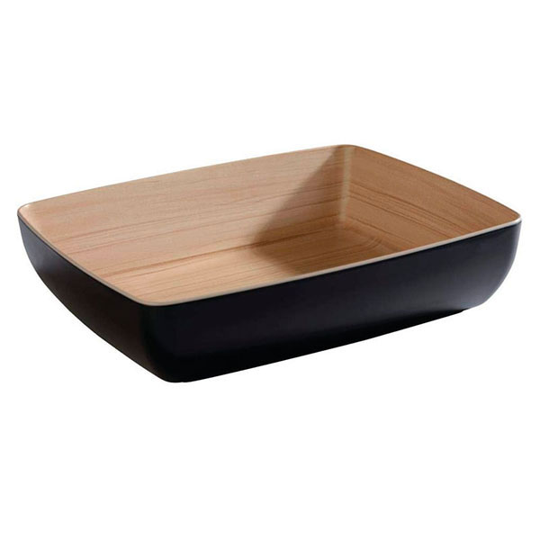 Fuente rectangular de melamina. Formas limpias y ángulos definidos.