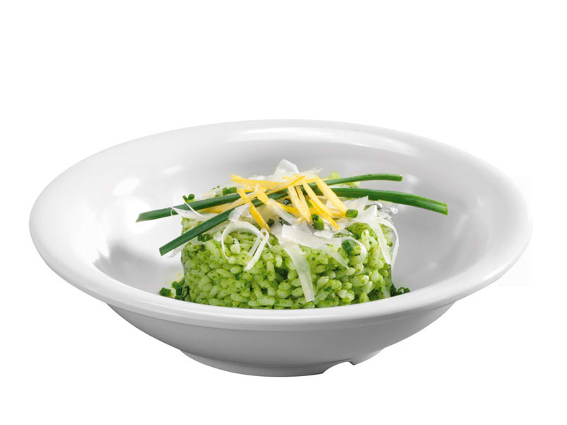 Vajilla melamina blanca.