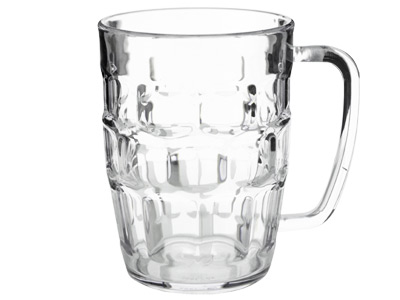 Jarra de cerveza Bremen. Jarra de cerveza de policarbonato transparente, apecto cristal. Ideal para bares de playa o piscina.