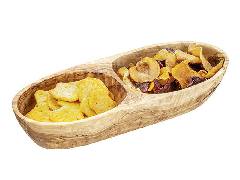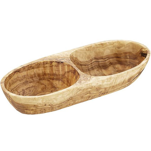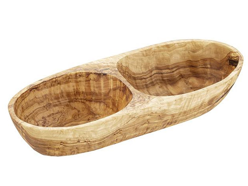 Cuenco doble de la colección Olive, diseñado especialmente para bufés y presentaciones culinarias. Este cuenco cuenta con dos cavidades ovales de gran capacidad.
