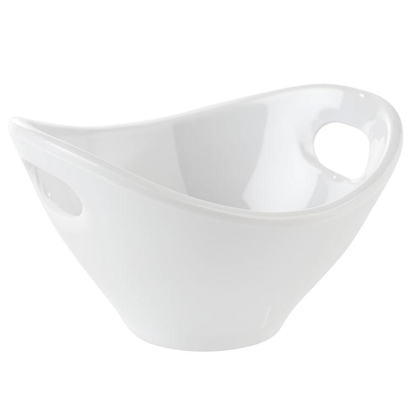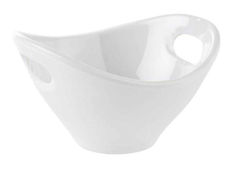 Cuenco Mini. Miniatura para bufé y presentación fabricado em melamina blanca. Esta miniatura ha sido concebida imitando a una cesta tanto por su forma como por sus dos pequeñas asas perforadas. Su tamaño compacto permite una presentación atractiva y la posibilidad de combinar varios cuencos de la colección Mini para crear composiciones personalizadas y creativas en la mesa.Disponible en dos tamaños. Ideal para servir salsas, aderezos, pequeñas porciones de alimentos o incluso como recipientes decorativos.