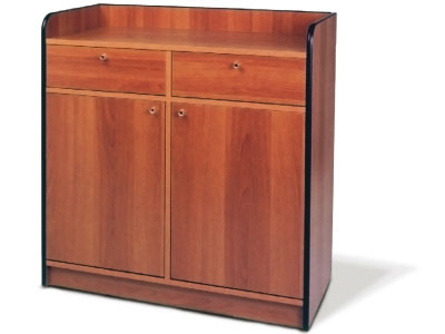 Café y té: Servicio de té/café de madera maciza. Estante superior equipado con mostrador extraíble. Vitrina con base refrigerada con placas eutécticas posicionadas en el estante inferior. Dos ruedas con freno estándar.