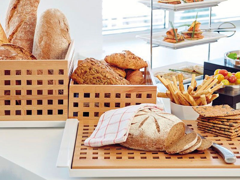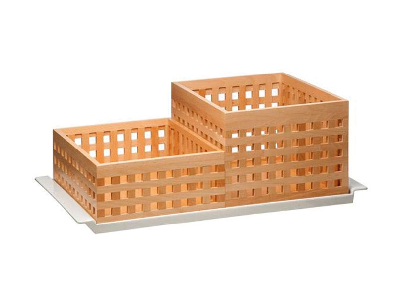 Cajas de madera calada para buffet, fabricadas en madera de haya. Perfecto acompañamiento con la bandeja de melamina con pies antideslizantes y tabla de corte BROTSTATION.