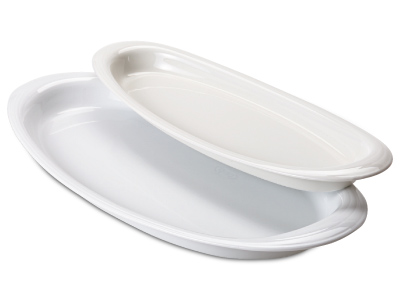 Cuenco doble de la colección Olive, diseñado especialmente para bufés y presentaciones culinarias.
