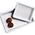 Aluminio pintado en negro o color plata. Medidas 24 x 12 x h4 cm. Soporte con 24 agujeros para conos. Se complementa con una bandeja ranurada de roble de 24 x 12 x h1 cm.