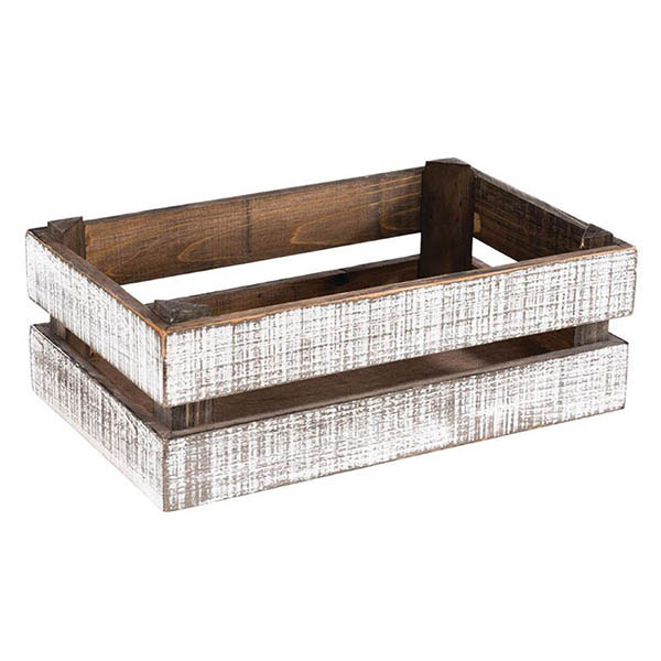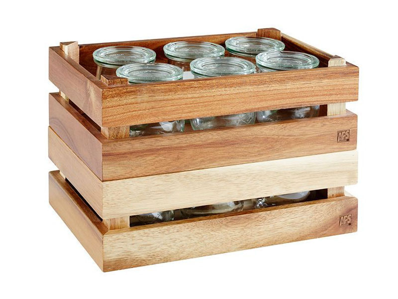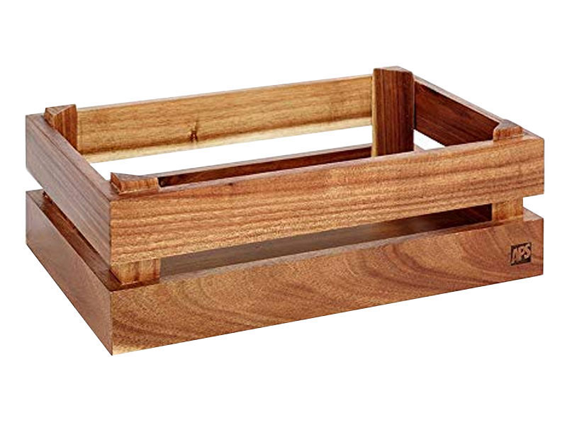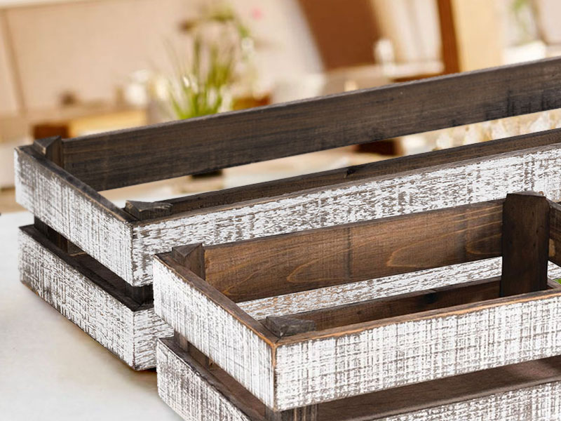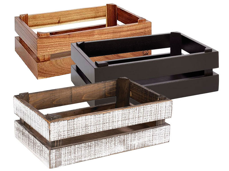 Madera de acacia en los colores natural o negro y madera de abeto en el acabado Vintage.