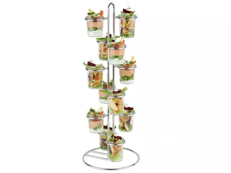 Expositor para tarritos Weck. Presentador metálico para 12 tarritos de vidrio rectos con tapa Weck de Ø6 cm. Tarros no incluidos.