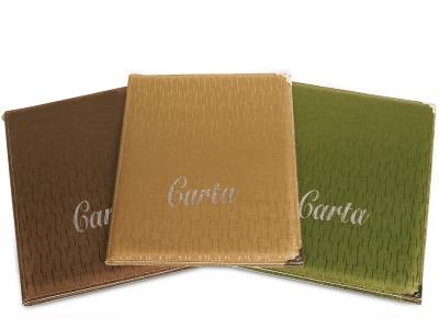 Portacartas Gourmet24 tamaño Golfo(163 x 234 mm) . Con su elegante diseño en ecopiel resistente a las manchas y fácil de mantener, ofrece una presentación de menús innovadora y duradera.