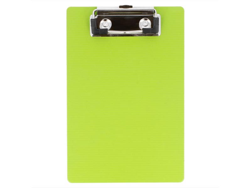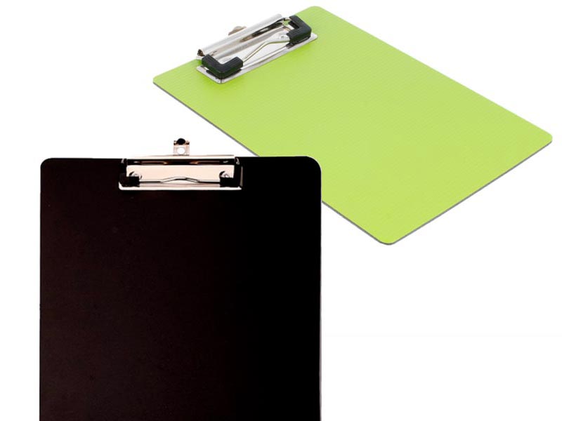 Tablero con acabado de madera prensada. Clip fuerte con resorte de acero inoxidable.