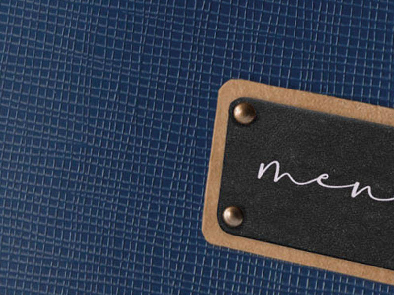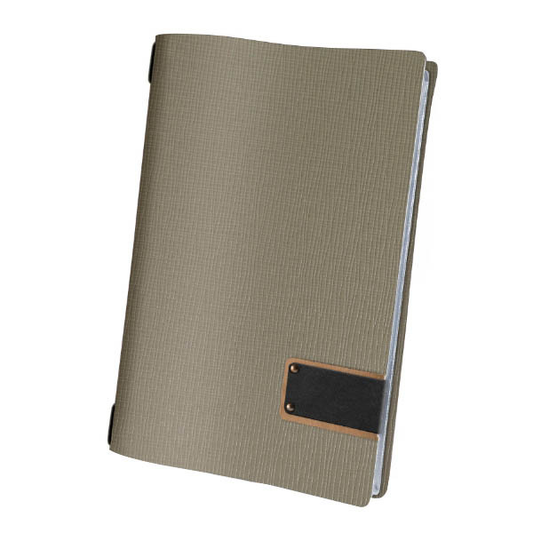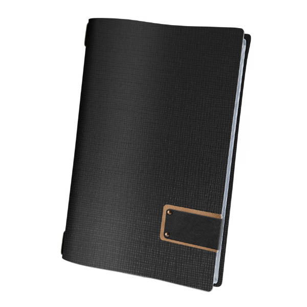 Portacartas Línea Chef. Cuero genuino regenerado con tratamiento antimanchas. Equilibrio entre materiales naturales y diseño contemporáneo. Para uso intensivo. Cubierta suave y textura en relieve. Incluye 1 funda doble (4 hojas) con elástico negro.