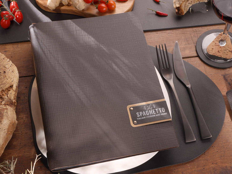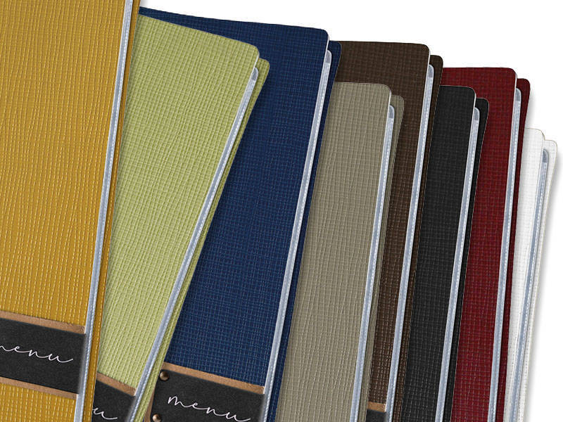Portacartas para formatos A4. 23,2x31,8 cm. Etiqueta con la palabra "menu" por defecto o personalizada con el logotipo de tu empresa.