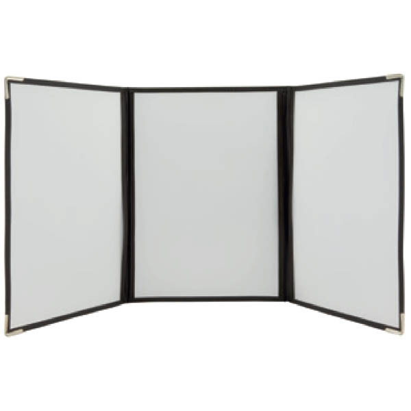 Fabricado en símil piel. Termosellado en crema. 3 solapas transparentes en Renoglass 0,4mm.