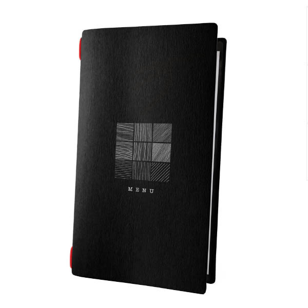 Menú en fibra de celulosa ecológico con portada personalizable con logo o texto. Incluye 1 funda doble (4 hojas)